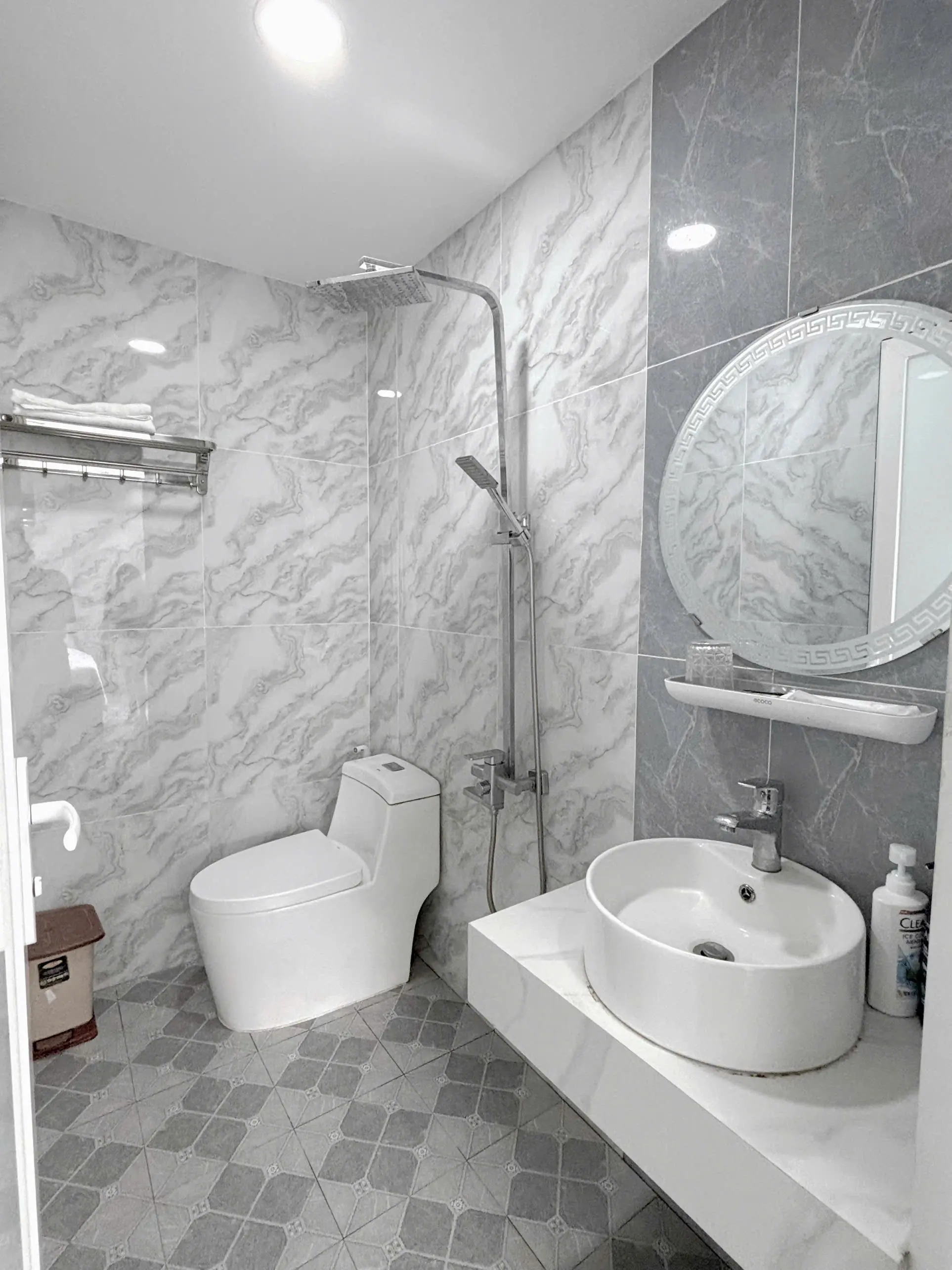 Phòng tắm riêng biệt, hiện đại với đầy đủ vật dụng vệ sinh cá nhân cao cấp.