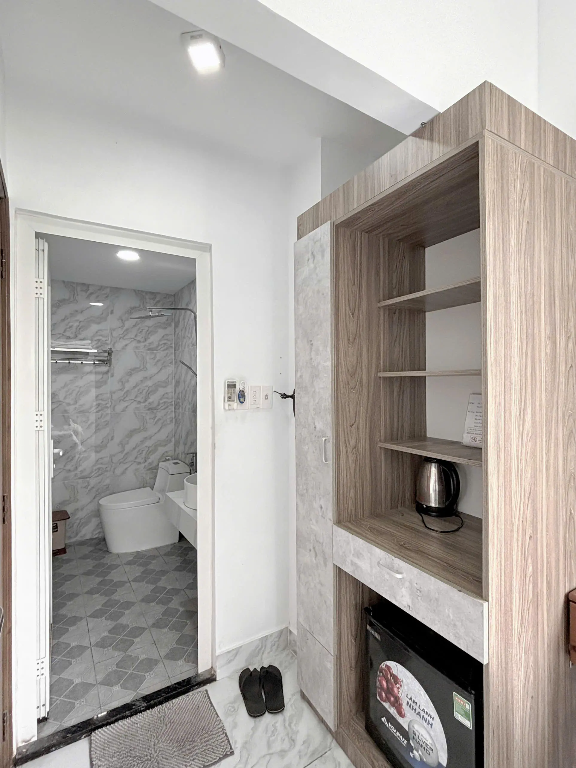 Nội thất sang trọng: Decor phòng theo tông màu ấm cúng, tinh tế với sàn đá sạch sẽ và các chi tiết gỗ hiện đại.